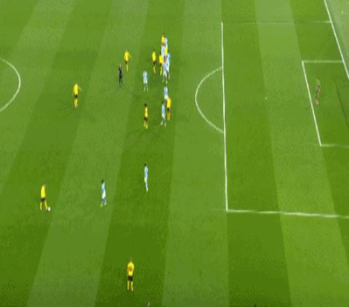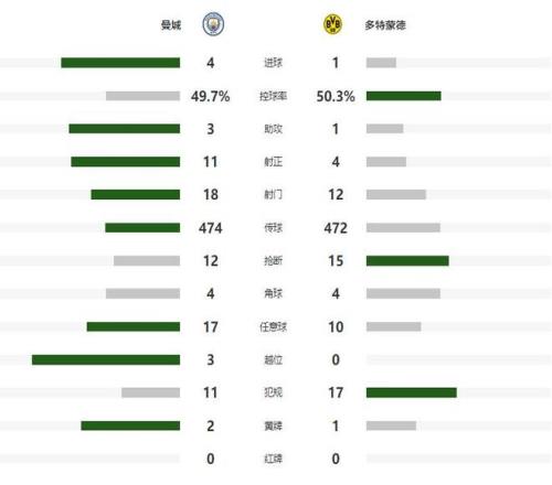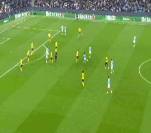 随着主裁判一声哨响,两支球队就在场上开始对攻,第9分钟福登大禁区前沿远射,被多特门将奋勇挡出,但此役非常活跃的曼城太子爷,还是在第22分钟打破了场上的平衡,自己带球推进到顶弧附近后,用一记贴地斩兜射远角,攻破大黄蜂球门,帮助曼城取得了1-0的领先。