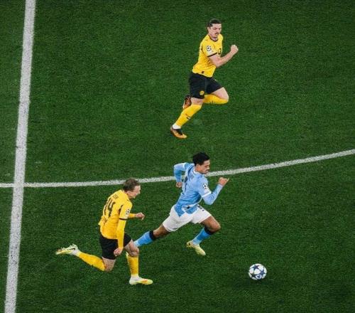 为了能够尽早锁定一个直通欧冠第二阶段淘汰赛的名额,瓜迪奥拉此役在主场也是毫无保留,在4141的阵型中,让多纳鲁马镇守龙门,奥赖利、格瓦迪奥尔、斯通斯和努内斯构筑防线,冈萨雷斯出任单后腰,多库、福登、赖因德斯和萨维尼奥在中场一字排开,哈兰德则一个人突前。
