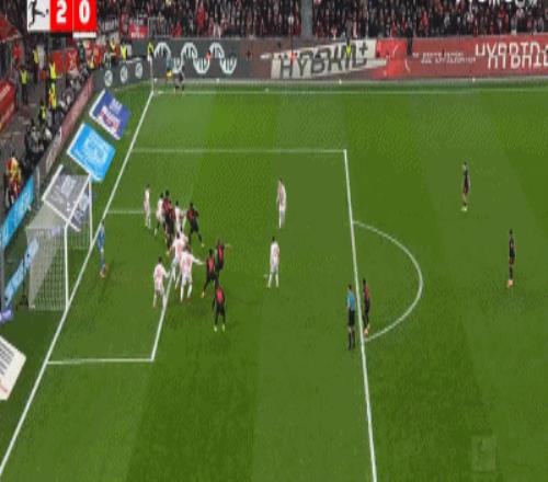 仅仅6分钟后,勒沃库森获得右侧角球机会,加西亚操刀主罚兜传门前,安德里希小禁区前沿高高跃起,力压防守球员强力头槌攻门,皮球应声入网,勒沃库森6分钟连进2球2:0领先。2球领先的勒沃库森之后还是稳稳压制住科隆,没有给科隆一丝机会,最终主场2:0完胜笑到最后。
