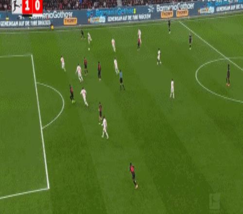 易边再战勒沃库森继续加强进攻,开场仅1分钟,勒沃库森中路快速反击就制造杀机,蒂尔曼断球高速往前推进,一路突入禁区获得超级单刀机会,然而蒂尔曼大力推射竟然踢飞了。第64分钟,勒沃库森右路快攻,亚瑟突到禁区边上兜传门前,刚刚替补登场的泰里耶小禁区前沿一记巧妙的蝎子摆尾打门,皮球越过门将坠入球门右下死角,勒沃库森1:0打破僵局。