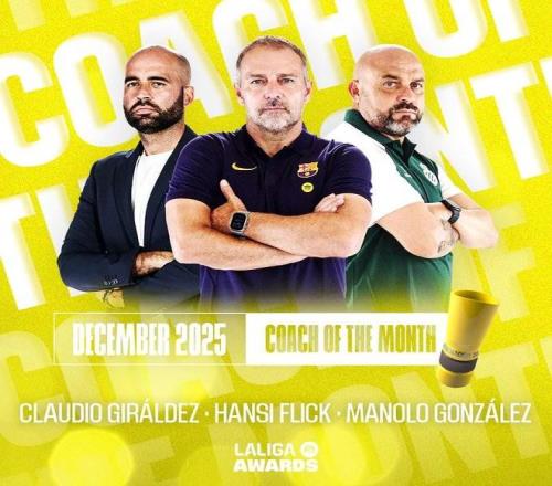 北京时间12月24日,西甲官方公布了12月最佳教练的候选名单,其中巴萨主帅弗里克、塞尔塔主帅克劳迪奥-希拉尔德斯、西班牙人主帅马诺洛-冈萨雷斯在列。