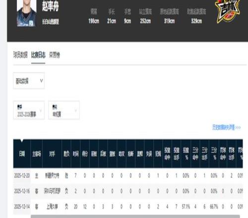 赵率舟上赛季在辽宁队属于边缘替补,上场机会寥寥无几,场均只能获5.4分钟的出场时间。因此,在休赛期赵率舟被辽篮当作交易筹码送到了吉林男篮,而他在新东家目前是高开低走。