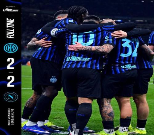 北京时间1月12日,在意甲第20轮的焦点战中,国际米兰在上下半时两度领先的情况下两度被扳平比分,最终在主场2-2战平那不勒斯,遭遇本赛季的首场平局,没能进一步扩大积分榜上的领先优势。