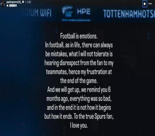 英超第13轮,热刺主场1-2不敌富勒姆,遭遇各项赛事三连败。今日,热刺后卫波罗更新社交媒体发表感言。在与富勒姆的比赛中,维卡里奥出现失误导致丢球,波罗离场时对球迷表现出不满。